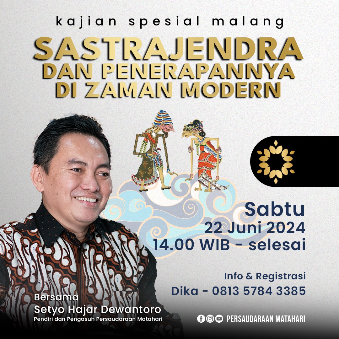 Kita pelajari kebenarannya dalam Kajian Offline Malang dengan tema SASTRAJENDRA DAN PENERAPANNYA DI ZAMAN MODERN bersama Guru Setyo Hajar Dewantoro