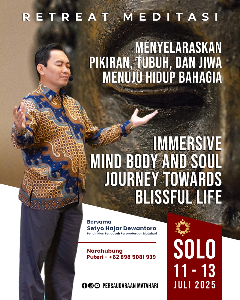 Temukan kebahagiaan dan versi terbaikmu, dalam perjalanan spiritual yang mentransformasi hidup, bersama Pendiri dan Pengasuh Persaudaraan Matahari, Guru Setyo Hajar Dewantoro.