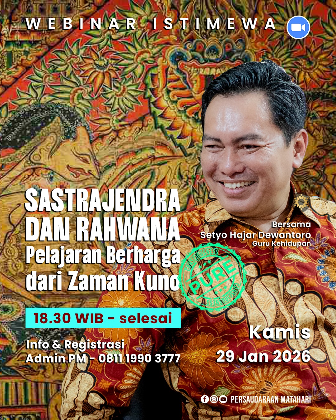 Dalam sesi ini, Guru Kehidupan Persaudaraan Matahari, Setyo Hajar Dewantoro, akan membabarkan versi kisah Rahwana yang berbeda, sekaligus mengajak kita memahami kembali makna Sastrajendra—sebuah pengetahuan luhur yang dibutuhkan di masa sekarang.