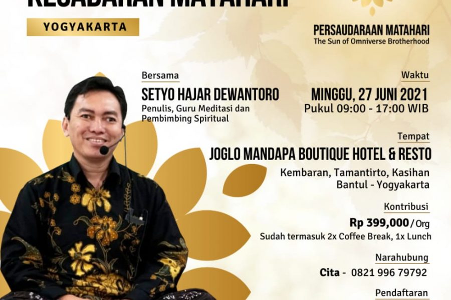Workshop Yogyakarta: Kesadaran MatahariWorkshop Persaudaraan Matahari bertema "Kesadaran Matahari" akan hadir di Yogyakarta. Tidak ada kata akhir dalam…Persaudaraan Matahari26 June 2021