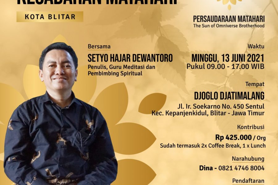 Workshop Blitar: Kesadaran MatahariWorkshop Perdana Persaudaraan Matahari akan hadir di Blitar bertemakan Kesadaran Matahari. Tiada ada kata akhir…Persaudaraan Matahari16 June 2021