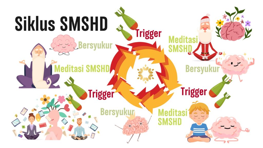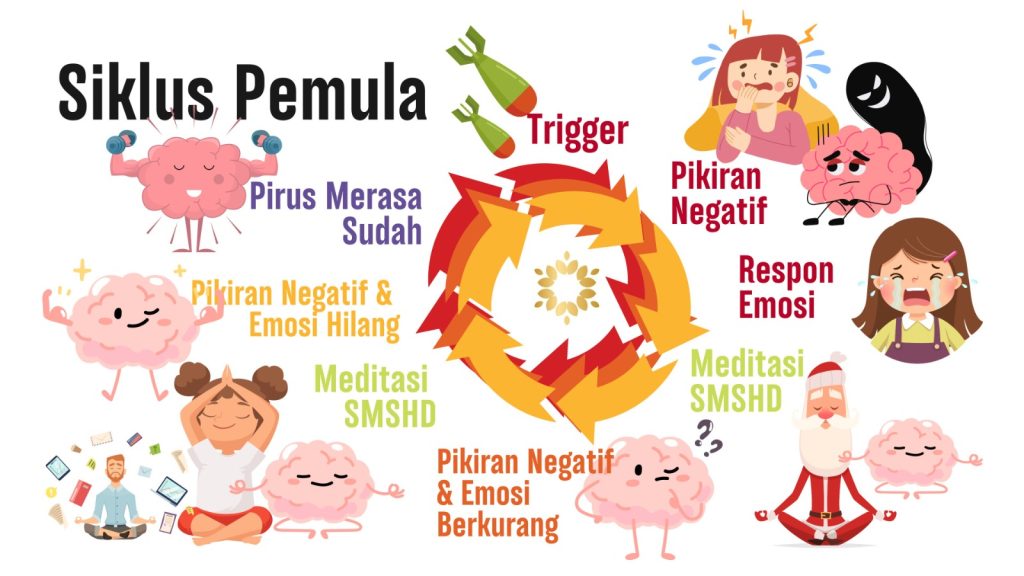 Siklus standar bagi yang belum mengenal meditasi/hening pemurnian jiwa, seperti saya dulu ketika hanya mampu mengelola kesehatan mental dengan kekuatan kognitif, intelektual, pendapat orang lain yang dianggap menyenangkan ego dan koleksi kalimat bijak. Mensugesti diri dengan konsep moral dan kebajikan umum, mencocoklogi dengan apa yang dianggap normal dan diterima oleh masyarakat pada umumnya walaupun tidak konstruktif dan berdampak negatif bagi kesehatan mental jiwa raga.